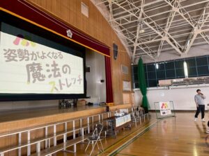 そこで、姿勢を整えるための「魔法のストレッチ」を実践。